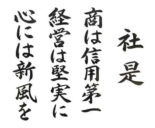 入交グループのすべての事業会社は、「商は信用第一 経営は堅実に 心には新風を」という共通した社是(理念)を掲げています。 どれだけ組織や業態が変わろうとも、根底に持ち続けたのは「商は信用第一」という普遍の基準です。 先輩たちから受け継がれ、培ってきたこの「信用」こそが、私たちの一番の強みとなっています。