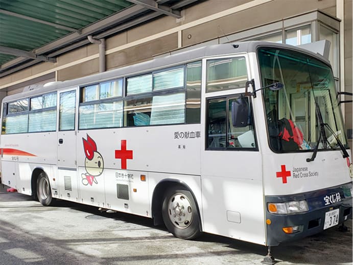定期的に献血バスが入交グループ本社ビルに訪れ、社員が献血活動に積極的に協力しています。 この活動は、社員一人ひとりが地域社会に貢献できる機会として、非常に大切にされています。 献血は命を救う活動であり、社員が健康を維持しながら社会に役立つことができる貴重な機会です。 企業として社会的責任を果たし、地域の一員として貢献することに誇りを持っています。